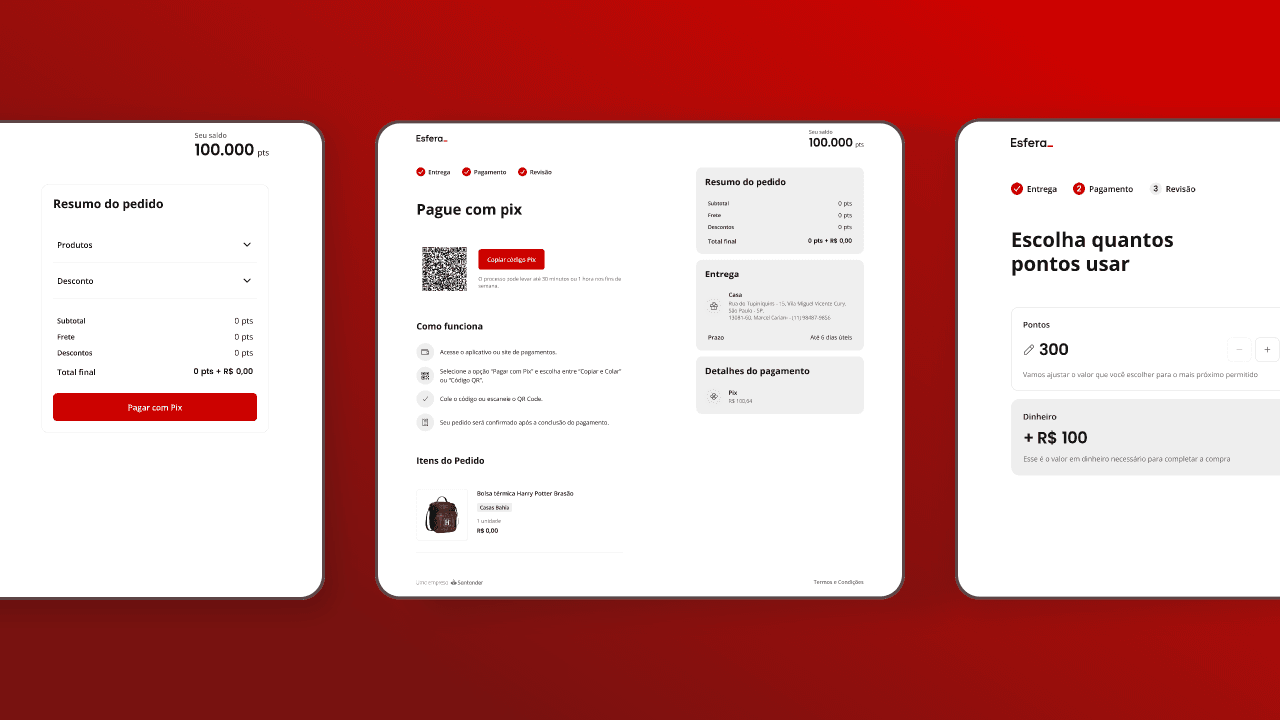 No Santander/Esfera, reposicionei o Rewards, design system da companhia, como produto estratégico, elevando para 64% a eficiência e conectando cada decisão ao negócio.