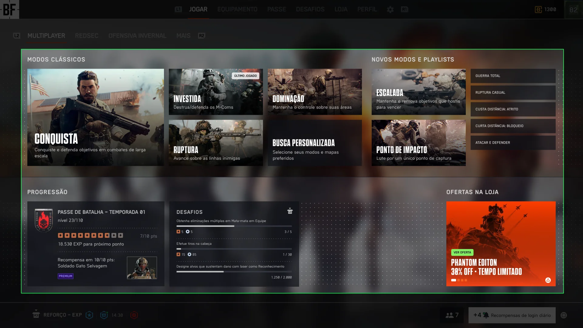 Os cinco insights não são conceitos abstratos. São problemas visíveis e mensuráveis na interface atual. As imagens a seguir ilustram onde cada insight se manifesta na Tela Inicial do BF6.