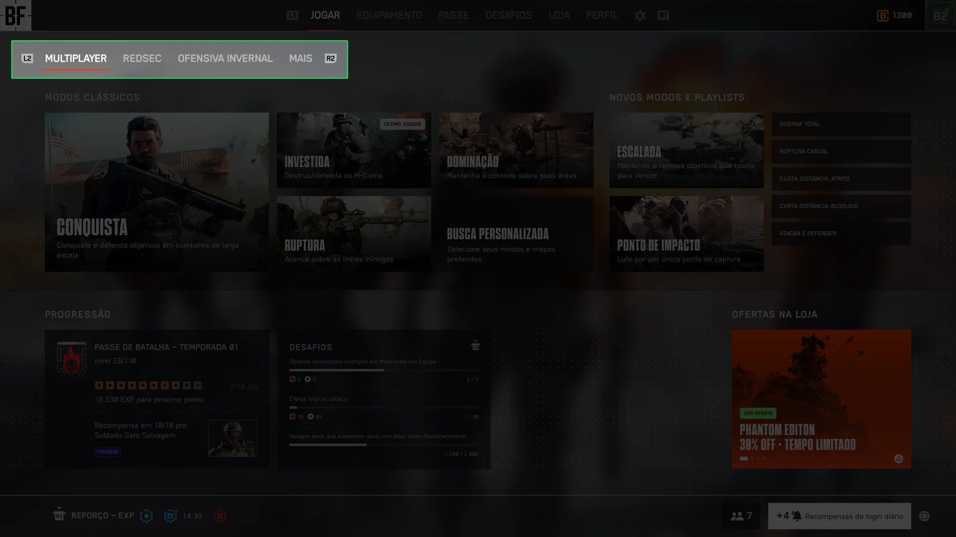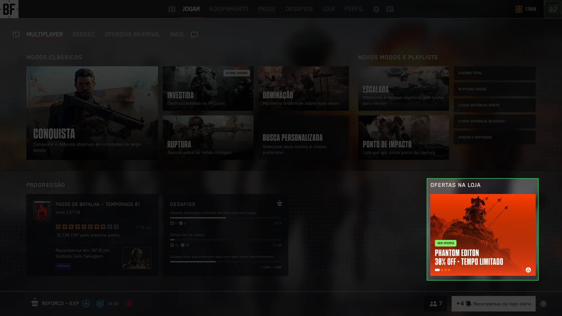 Ao mesmo tempo, num multiplayer live service como BF6 se propõe a ser, e num mercado como existe hoje, o aspecto da monetização via microtransações é vital para sustentabilidade do produto e alcance de metas financeiras estipuladas. Mostrar ofertas da loja, passes de batalha, upgrades para versões premium, é necessário. A Tela Inicial é o ponto de maior visibilidade.